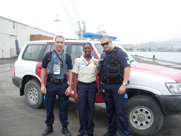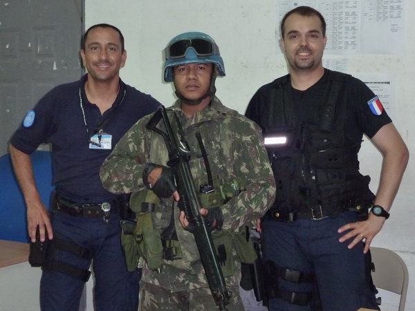 Hervé et douk en patrouille avec une collègue PNH (Policier National Haïtien)