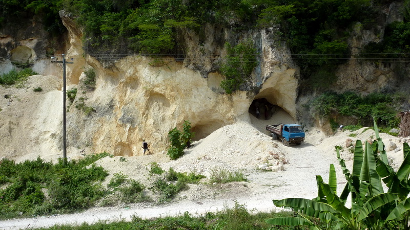 Une carrière où le travail s'effectue à la pelle et à la pioche...