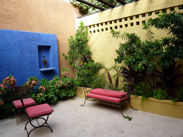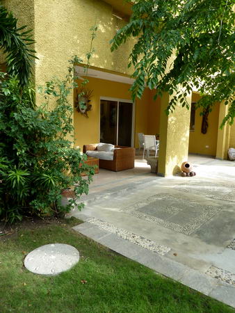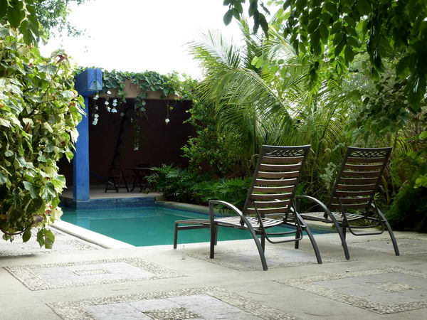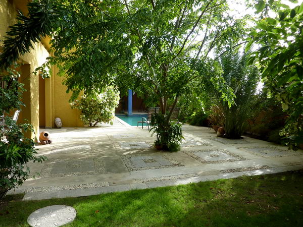 Le jardin, ses divers salons et la piscine...